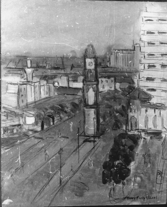 T. F.-V. La Tour de l'horloge, signée Tony Fritz Vilars en bas à droite, 1941.