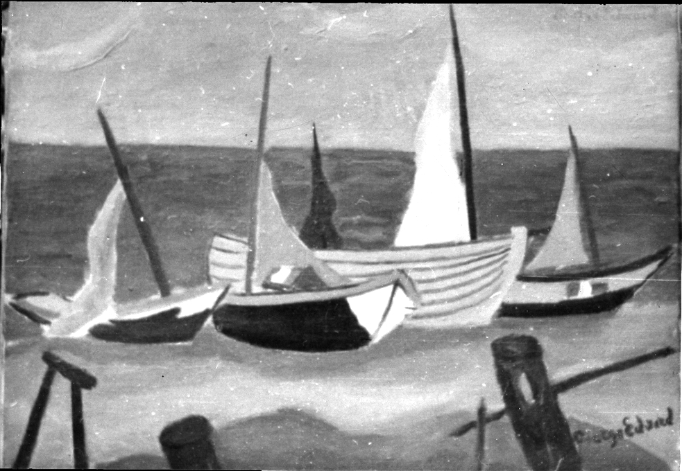 T. F.-V. Barques à Yport , signée George Edward en bas à droite, 1945.