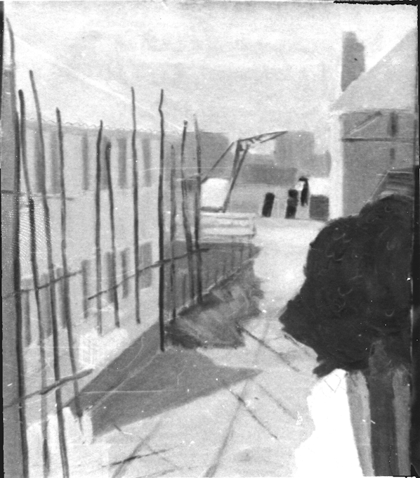 T. F.-V. Rue Moiteuse sous la neige, signée en bas à droite Tony Fritz Vilars, 1940.