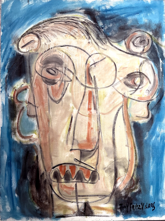 T.F.-V., Visage, huile sur toile, 65x50 cm, signée Tony Fritz Vilars en bas à droite , 1962/1963.Photo © 2022 d'Emilio Zahonero, coll. particulière.