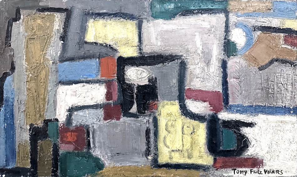 T. F.-V., huile sur toile, sans titre, 50x60 cm, signée Tony Fritz-Vilars en bas à droite, circa 1962-63.Photo © 2000 de la Galerie d'Art et d'Antiquités Michel Bertran. Coll. particulière François Duval.