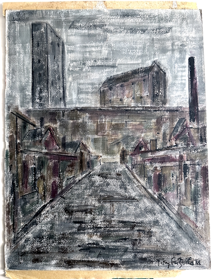T.F.-V, Usine et la prison Rouen gauche, gouache, 32.5x25 cm, signé Tony Fritz Vilars en bas à droite, 1960/1961.Photo © 2022 d'Emilio Zahonero, coll. particulière.