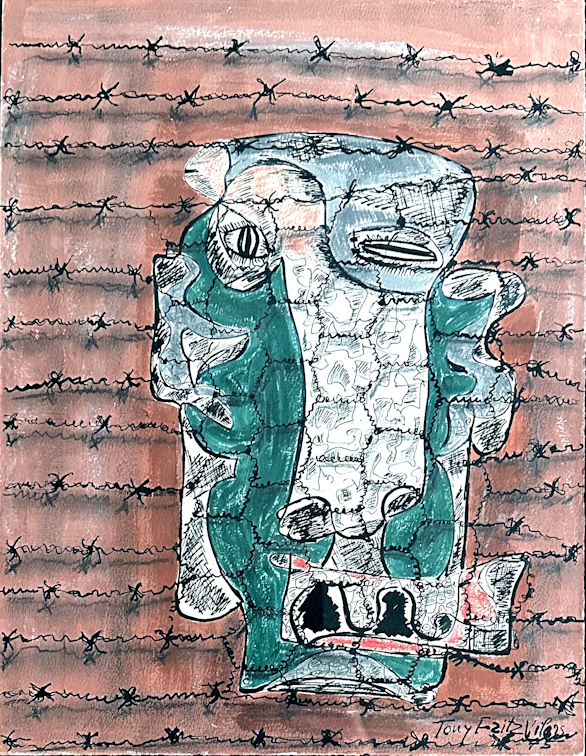 T.F.-V., sans titre, technique mixte sur papier, 32x25 cm, signé Tony Fritz Vilars en bas à droite, 1975.