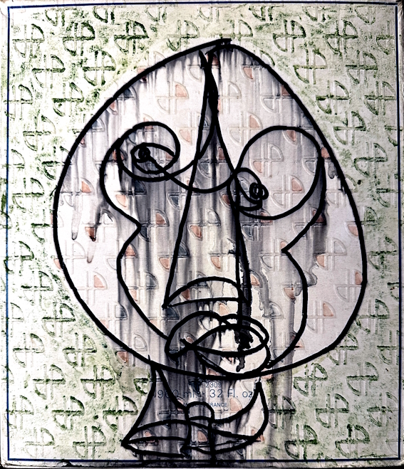 T. F.-V., sans titre, dessin sur boite de parfum, 23x20 cm, non signé, non daté.