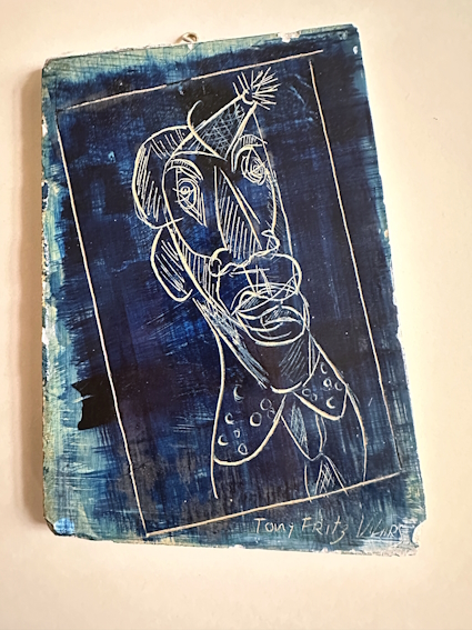 T. F.-V., sans titre, dessin sur plaque plastifiée, 16x16,5 cm, non daté.