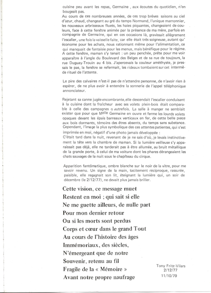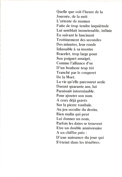 Les sillons d'une vie que la neige du temps n'efface pas, récit autobiographique, 1979, non folioté (32 p.). (édition artisanale auto-éditée en très peu d'exemplaires, réalisée par l'auteur avec des photocopies 21x29,7 cm). Scan de François Duval, coll. particulière.